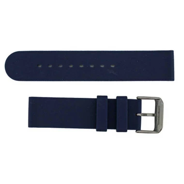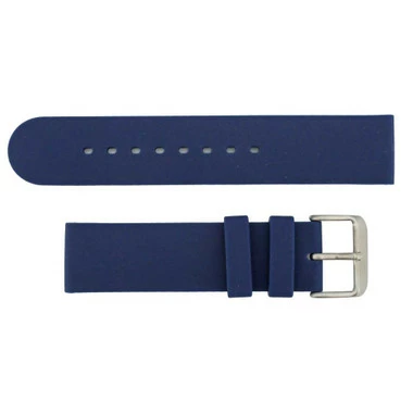 This blue Silicone watch band is a good choice for a standard to heavy use watch. The ultra soft Silicone band is extremely flexible with elastic like properties and can easily be adjusted and still fit flat and comfortably on your wrist. The durable Silicone will not deteriorate and it gives the band a tougher and longer life. It has a matte finish similar to the “jelly” watch straps. The band features a heavy duty silver tone stainless steel buckle that makes the band size adjust easily at any time. The Silicone is flexible and resilient requiring very little or no break-in period.