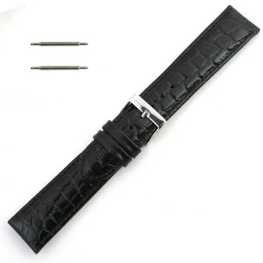 Styled for fashion watches, the black croco grain band is made of calfskin leather. The watchband is a good choice for a standard dress watch. The leather is high gloss finish to match your old watchband or apparel. The watch band is lightly padded for comfort. The band features a silver tone stainless steel buckle that makes the band size adjust easily at any time. The leather is soft and flexible, requiring very little or no break-in period.