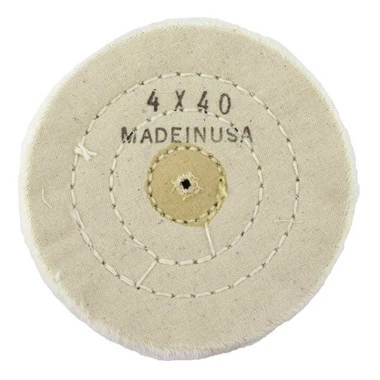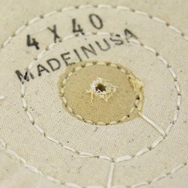 Coarse weave Muslin buffs have a more open weave to hold more compound. Used as a general purpose buff with cutting and polishing compounds. Combed edges do no need breaking in or combing to hold compound. The center pin holes are reinforced with shellac for a tight fit on tapered mandrels and for greater durability. Great for polishing with rouge.