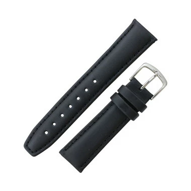 This black genuine oil tan leather watch band is a good choice for a dress watch. The remborde construction of the strap seals the edge of the band to improve its water resistance and allow for longer wear. Flexible leather requires very little or no break in period. Watch band has a matte finish. Medium padding allows for extra comfort while wearing. The band features a silver tone stainless steel buckle, that is easy to adjust to change the bands length.Â