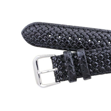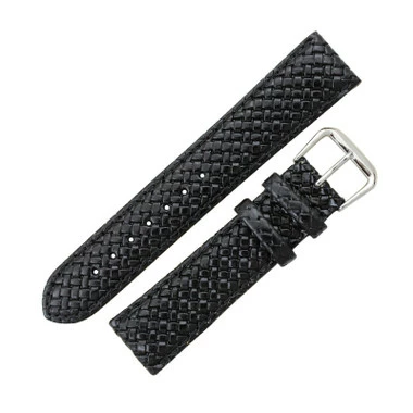 This black genuine leather watch band offers the luxurious island style of ‘Tommy Bahama®’ apparel. It’s woven leather appearance will be sure to compliment your wrist watch. The remborde construction of the strap seals the edge of the band to improve its water resistance and allow for longer wear. Flexible leather requires very little or no break in period. Watch band has a semi gloss finish and stitching. Medium padding allows for extra comfort while wearing. The band features a silver tone stainless steel buckle, that is easy to adjust to change the bands length.