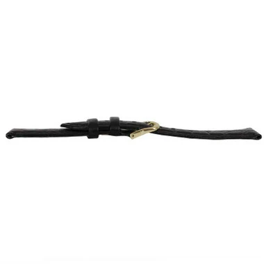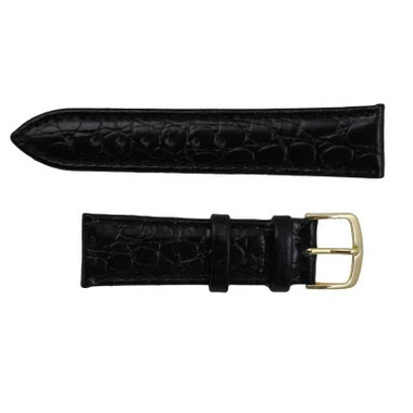 Styled for fashion watches, the black croco grain band is made of calfskin leather. The watchband is a good choice for a standard dress watch. The leather is high gloss finish to match your old watchband or apparel. The watch band is lightly padded for comfort. The band features a yellow tone stainless steel buckle that makes the band size adjust easily at any time. The leather is soft and flexible, requiring very little or no break-in period.