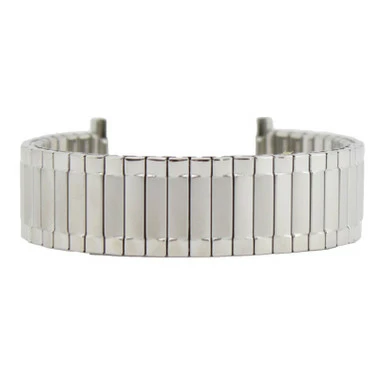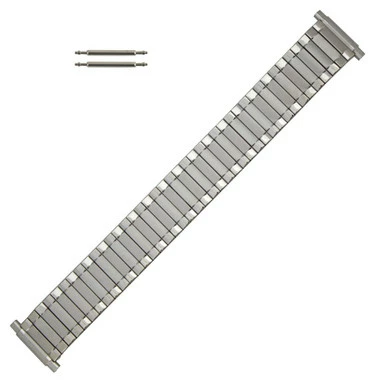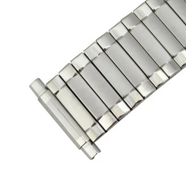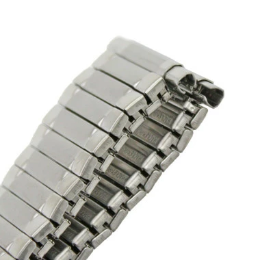 This expansion men’s silver tone accents watchband is a good choice for those seeking a good fitting comfortable stretch watch strap with uniform stylish fancy links. The expandable ends on this watchband cover the watch pin so the watch looks complete, allowing the band to fit onto many size watches from 18mm to 22mm. The watch band is adjustable, flexible and tough. It is well suited for an office worker, in addition to physical exercise or outdoor working environments. Because of the design of expandable watch bands, this watch band will hold securely in place on your wrist and slip over your hand easily, so no watch buckle is needed. It has quality construction with re-enforced link pins, durable stainless steel, and silver finish to last years. The watch band has straight end pieces and a uniform straight width design.