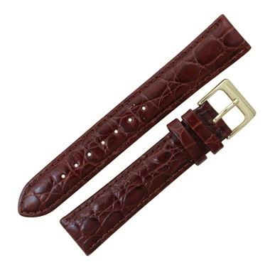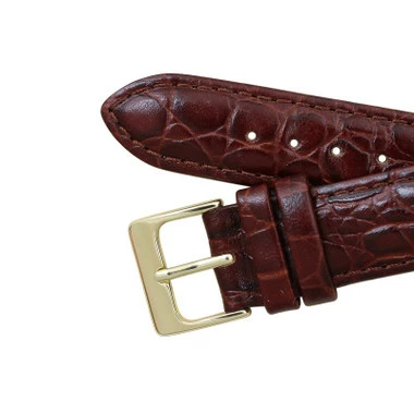 Styled for fashion watches, the brown crocodile grain is made of calfskin leather. The watchband is a good choice for a standard dress watch. The leather is high gloss finish to match your old watchband or apparel. The watch band is lightly padded for comfort. The band features a gold tone stainless steel buckle that makes the band size adjust easily at any time. The leather is soft and flexible, requiring very little or no break-in period.