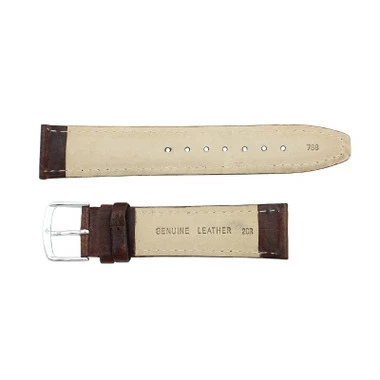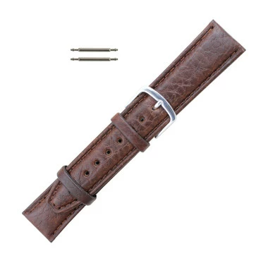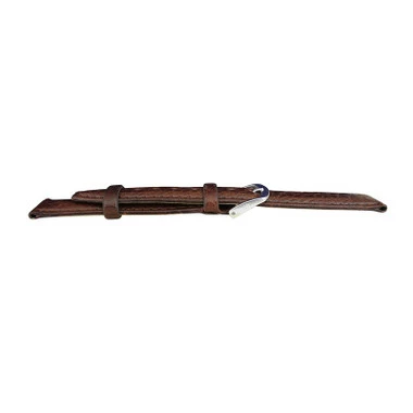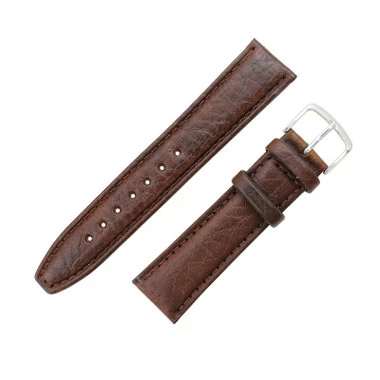 This brown genuine leather shrunken grain watch band is a good choice for a man’s dress watch. The remborde construction of the strap seals the edge of the band to improve its water resistance and allow for longer wear. Flexible leather requires very little or no break in period. Watch band has a matte finish with stitching. Medium padding allows for extra comfort while wearing. The band features a silver tone stainless steel buckle, that is easy to adjust to change the bands length.Â