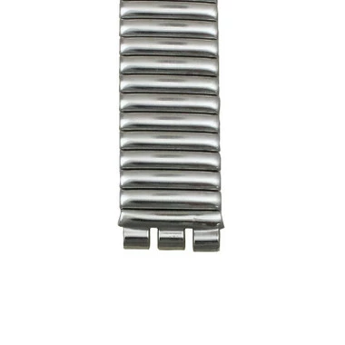 This expansion watch band has made to fit Swatch® style notched ends. Its made of silver tone stainless steel and will nicely compliment your Swatch® style watch. Expandable watch bands easily fit over your wrist and hold securely in place without the hassle of a watch buckle. Width of band is 19 mm but it fits between Swatch® style notched lugs that measure 17 mm in width.