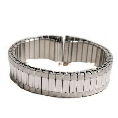 This adjustable expansion men’s silver tone watch band is a good choice for those seeking a good fitting comfortable stretch watch strap, with uniform stylish fancy links. The expandable ends on this watchband cover the watch pin so the watch looks complete and the design fits, allowing the band to fit onto watch openings from 16mm to 21mm. The watch band is adjustable, flexible and tough. Because of the design of expandable watch bands, this watch band will hold securely in place on your wrist and slip over your hand easily, so no watch buckle is needed. It has quality construction with re-enforced link pins, durable stainless steel, and silver finish to last years. The watch band has straight end pieces and a tapered width design.