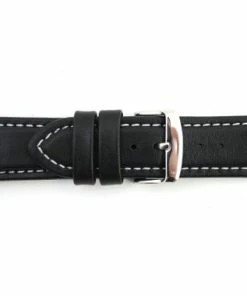 Watch Band 20mm Black Leather Smooth Classic Calf 8 1/4 Inch Length