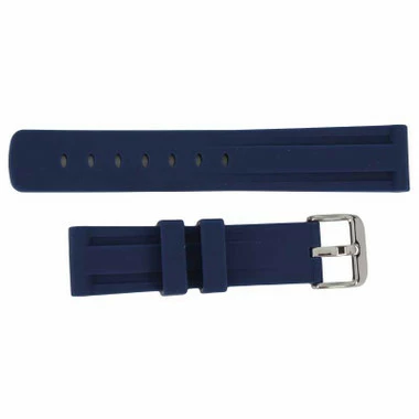 This blue Silicone watch band is a good choice for a standard to heavy use watch. The ultra soft Silicone band is extremely flexible with elastic like properties and can easily be adjusted and still fit flat and comfortably on your wrist. The durable Silicone will not deteriorate and it gives the band a tougher and longer life. It has a matte finish similar to the “jelly” watch straps. The band features a heavy duty silver tone stainless steel buckle that makes the band size adjust easily at any time. The Silicone is flexible and resilient requiring very little or no break-in period.