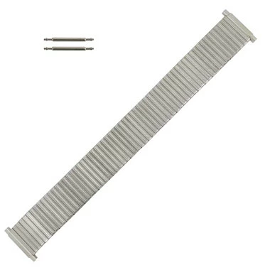This expansion men’s silver tone accents watchband is a good choice for those seeking a good fitting comfortable stretch watch strap with uniform stylish fancy links. The expandable ends on this watchband cover the watch pin so the watch looks complete, allowing the band to fit onto many size watches from 16mm to 22mm. The watch band is adjustable, flexible and tough. It is well suited for an office worker, in addition to physical exercise or outdoor working environments. Because of the design of expandable watch bands, this watch band will hold securely in place on your wrist and slip over your hand easily, so no watch buckle is needed. It has quality construction with re-enforced link pins, durable stainless steel, and silver finish to last years. The watch band has straight end pieces and a uniform straight width design.