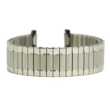 This expansion style stainless steel watchband is a good choice for those seeking a good fitting comfortable stretch watch strap with uniform stylish fancy links. The curved expandable ends on this watchband cover the watch pin so the watch looks complete and the design fits, allowing the band to fit onto watches from 18mm to 22mm. The watch band is adjustable, flexible and tough. It is also well suited for an office worker, in addition to physical exercise or outdoor working environments. Due to the design of expandable watch bands, it will hold securely in place on your wrist and slip over your hand easily, so no watch buckle is needed. It has quality construction with re-enforced link pins, and durable stainless steel to last years.