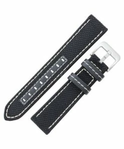 Hadley Roma Anti-Ballistic Material Watch Strap 22mm Black With White Stitching 7 3/4 Inch Length