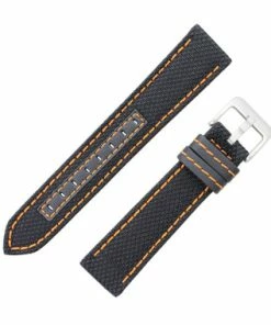 Hadley Roma Anti-Ballistic Watch Strap 18mm Black With Orange Stitching 7 3/4 Inch Length