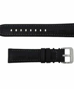 Black Leather 24mm Alligator Grain Stitched With Silicone Lining 7 7/8 Inch Length