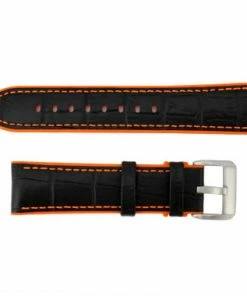 Black Leather 22mm Alligator Grain Stitched With Orange Silicone Lining 7 7/8 Inch Length