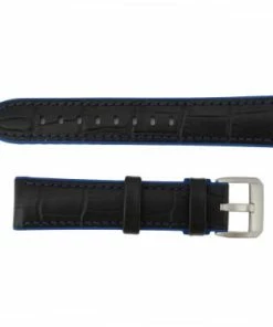 Black Leather 22mm Alligator Grain Stitched With Blue Silicone Lining 7 7/8 Inch Length