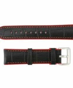 Black Leather 22mm Alligator Grain Stitched With Red Silicone Lining 7 7/8 Inch Length