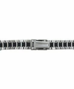Silver Tone Stainless Steel 6 11/16 Inch Length Metal Watch Band With Black Accents 20mm
