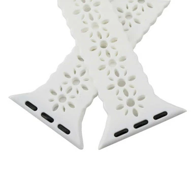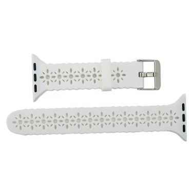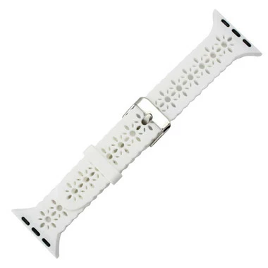 This white waterproof silicon watch band is a good choice for a fashion watch. This band features elegant hollowed out flower-lace shaped pattern with silver tone buckle.